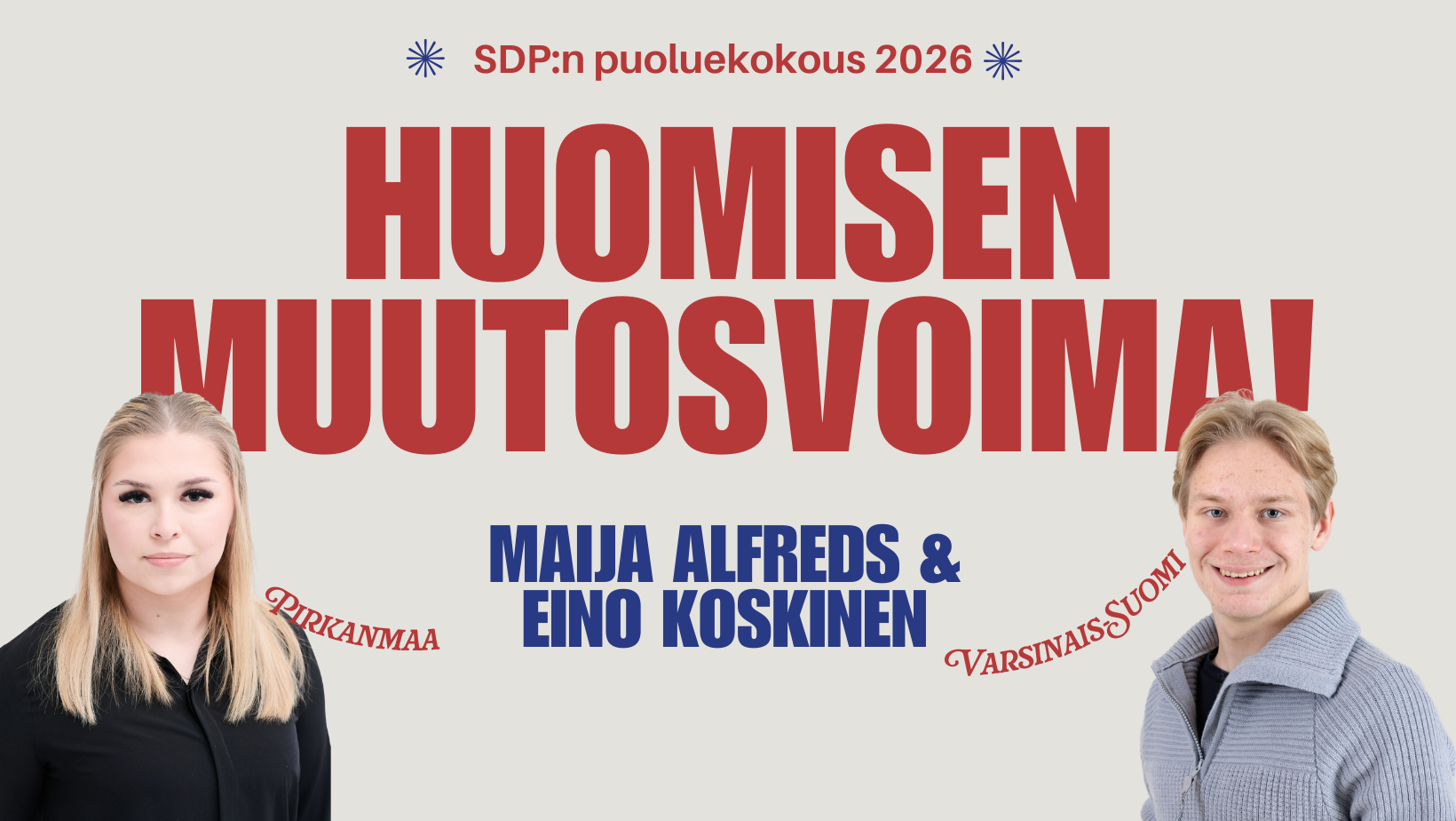 This text was written by Eino Koskinen from Southwest Finland and Maija Alfreds from Pirkanmaa. Both are candidates for party congress delegate.