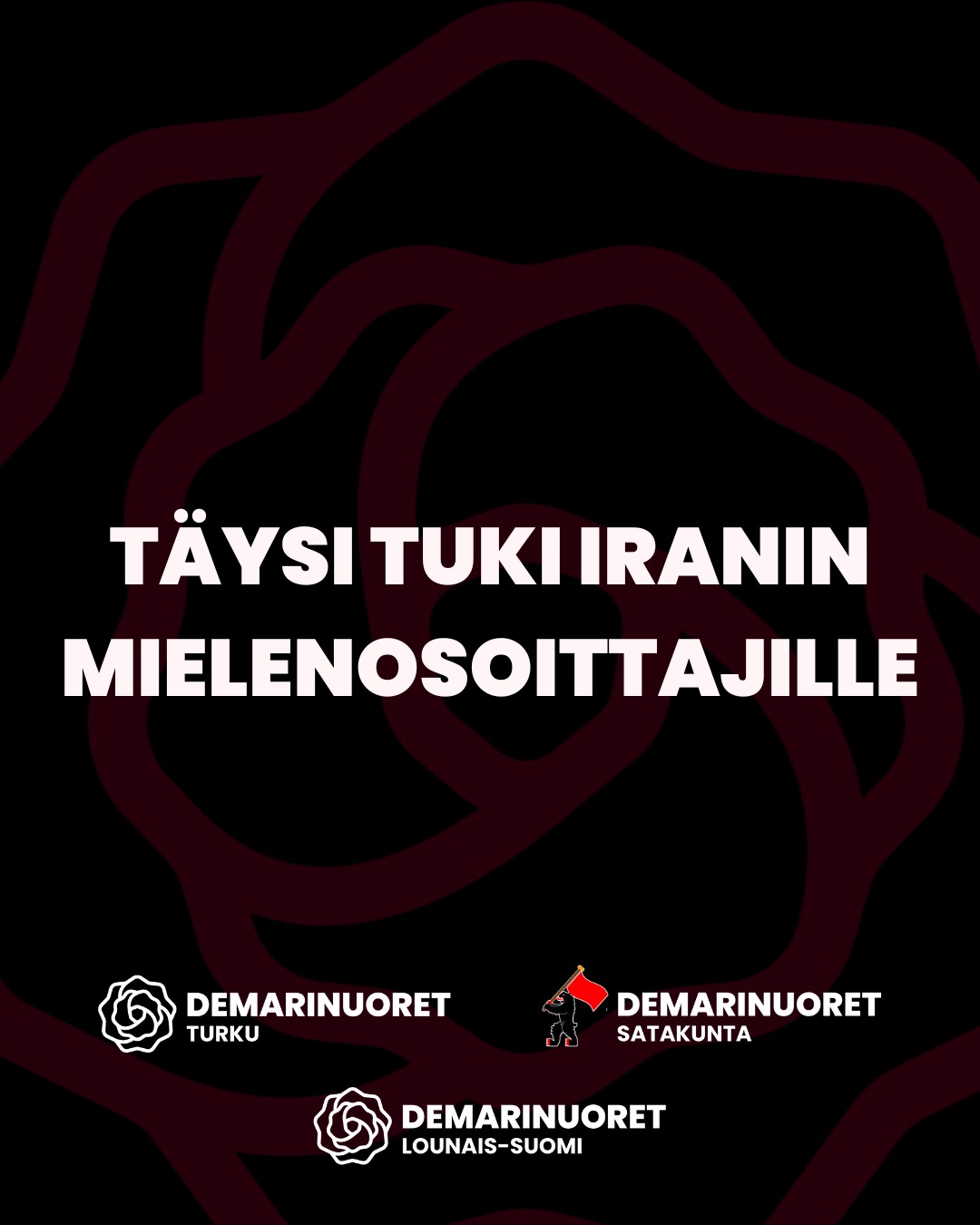 Me Lounais-Suomen, Turun ja Satakunnan Demarinuoret ilmaisemme täyden tukemme Iranin kansalle taistelussa hirmuvaltaa vastaan.